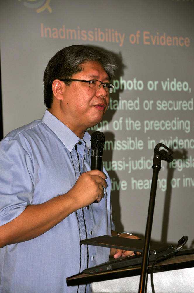 The Chairman of ASIS International – Philippines Chapter, Atty. Paulino L. Yusi, discussed the legal restrictions and proper usage of CCTVs. He explained the known laws and pending bills on the use of CCTV. He also discussed relevant rules on Philippine electronic evidence, limitations on recordings, privacy rules of nanny cams, and other legal restraints in the use of CCTV systems. The purpose of the discussion is for them to know and avoid legal complications on the use of video surveillance systems and on how to properly use video recordings as evidences in court.